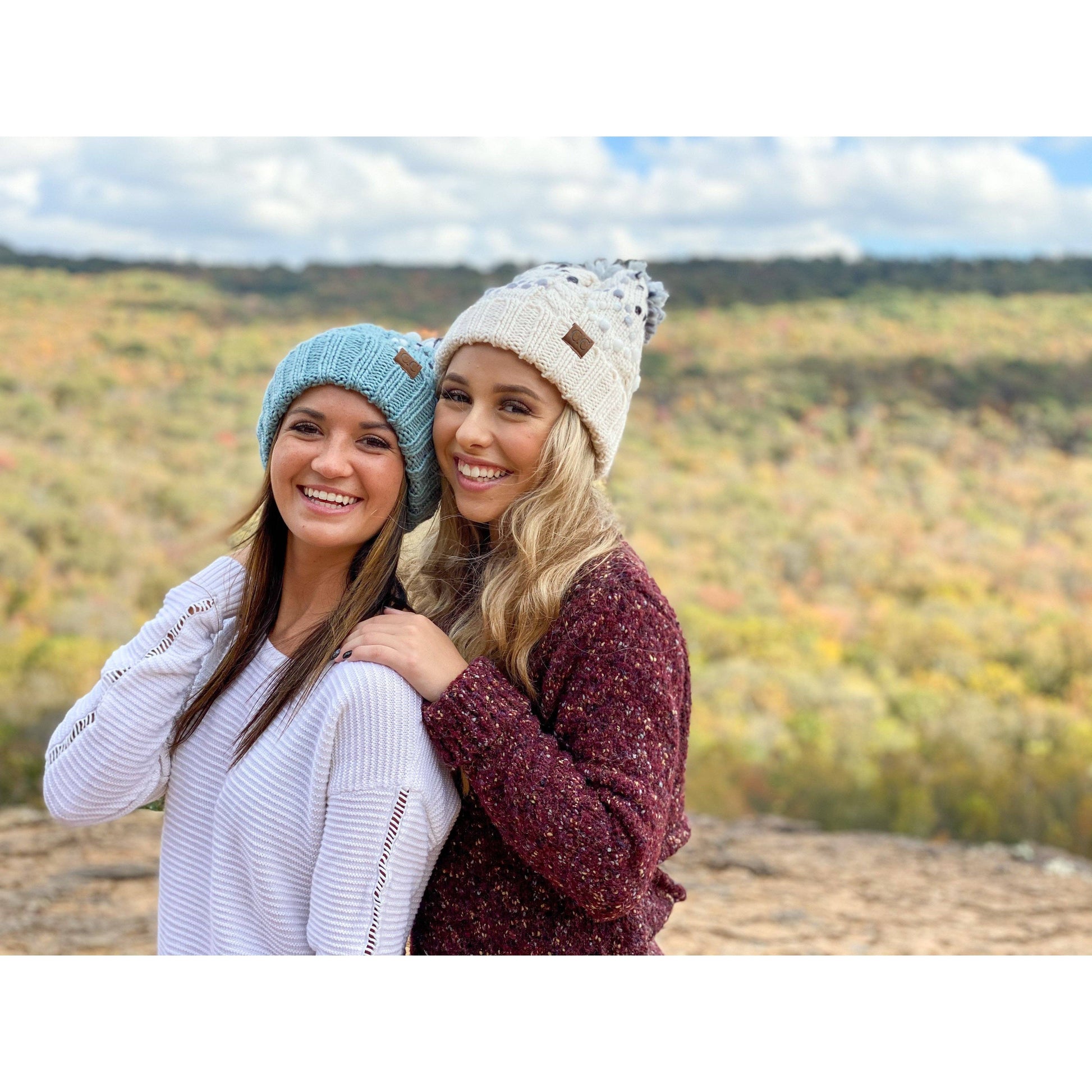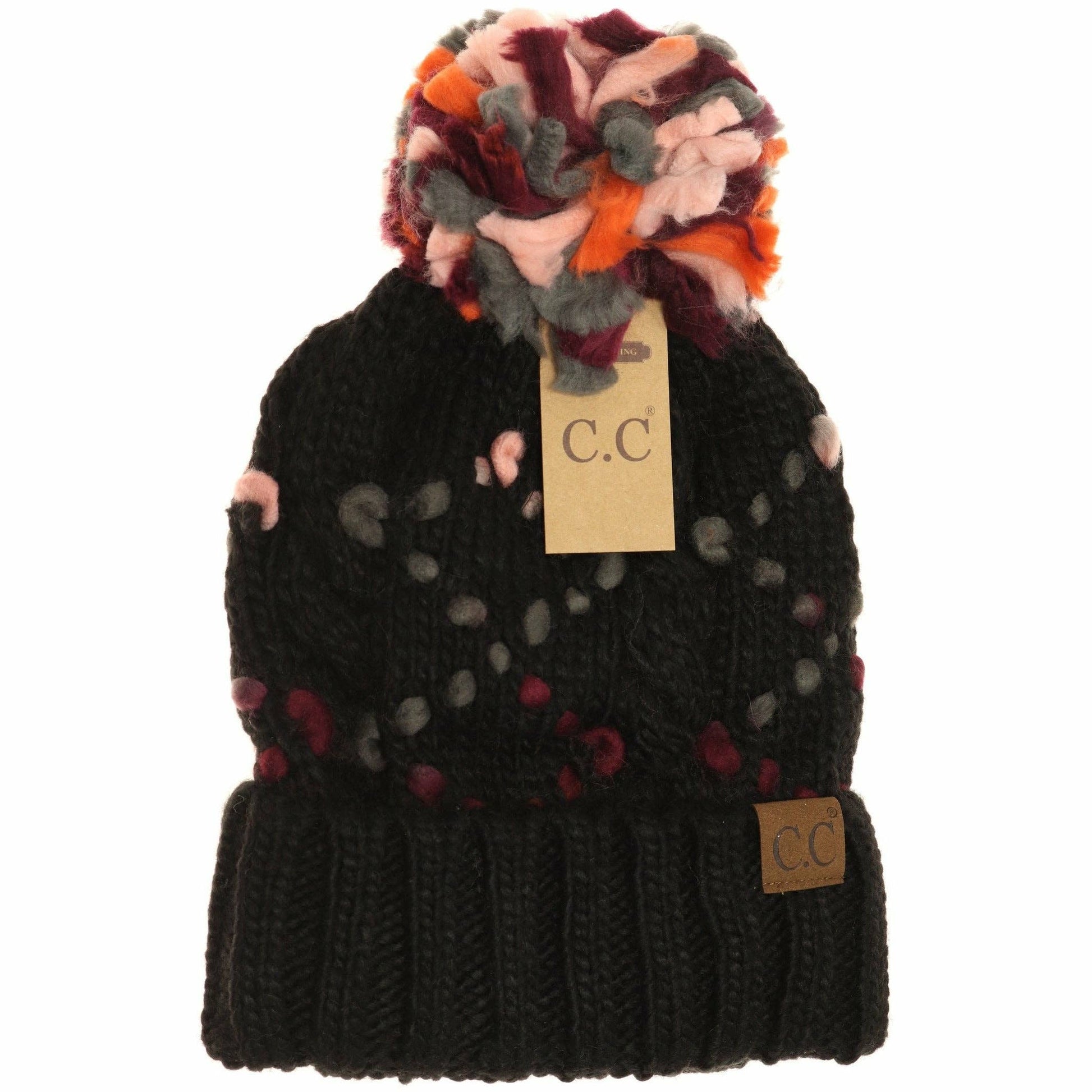 Brand new! This beanie shows off a chunky knit pattern with a two-tone yarn pom on top! This beanie is partially lined inside for added comfort and warmth!