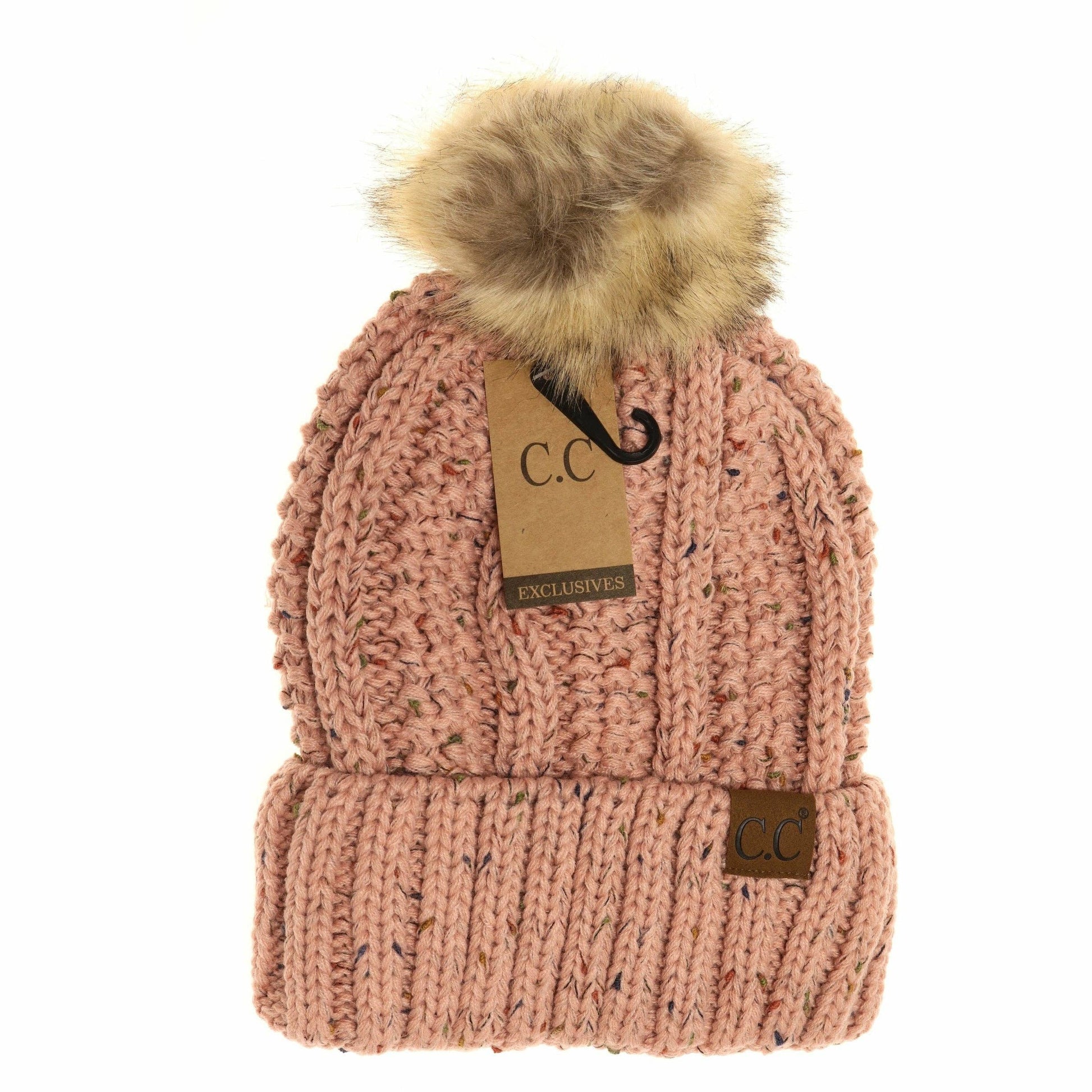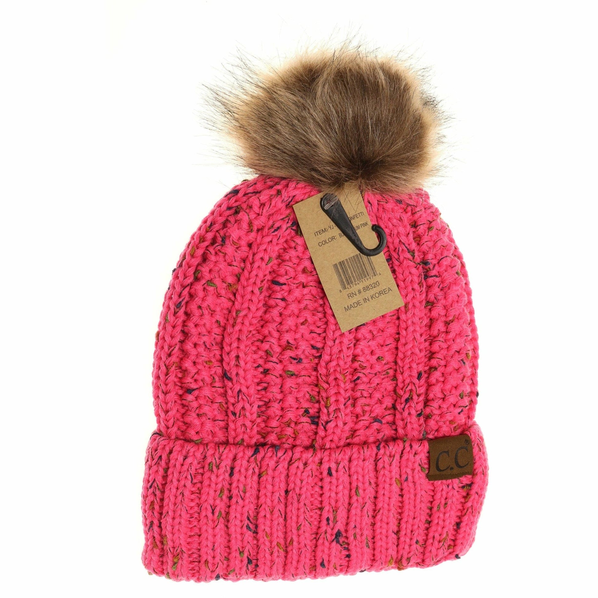 Fuzzy Lined Flecked Fur Pom CC Beanie YJ820CONFETTI
