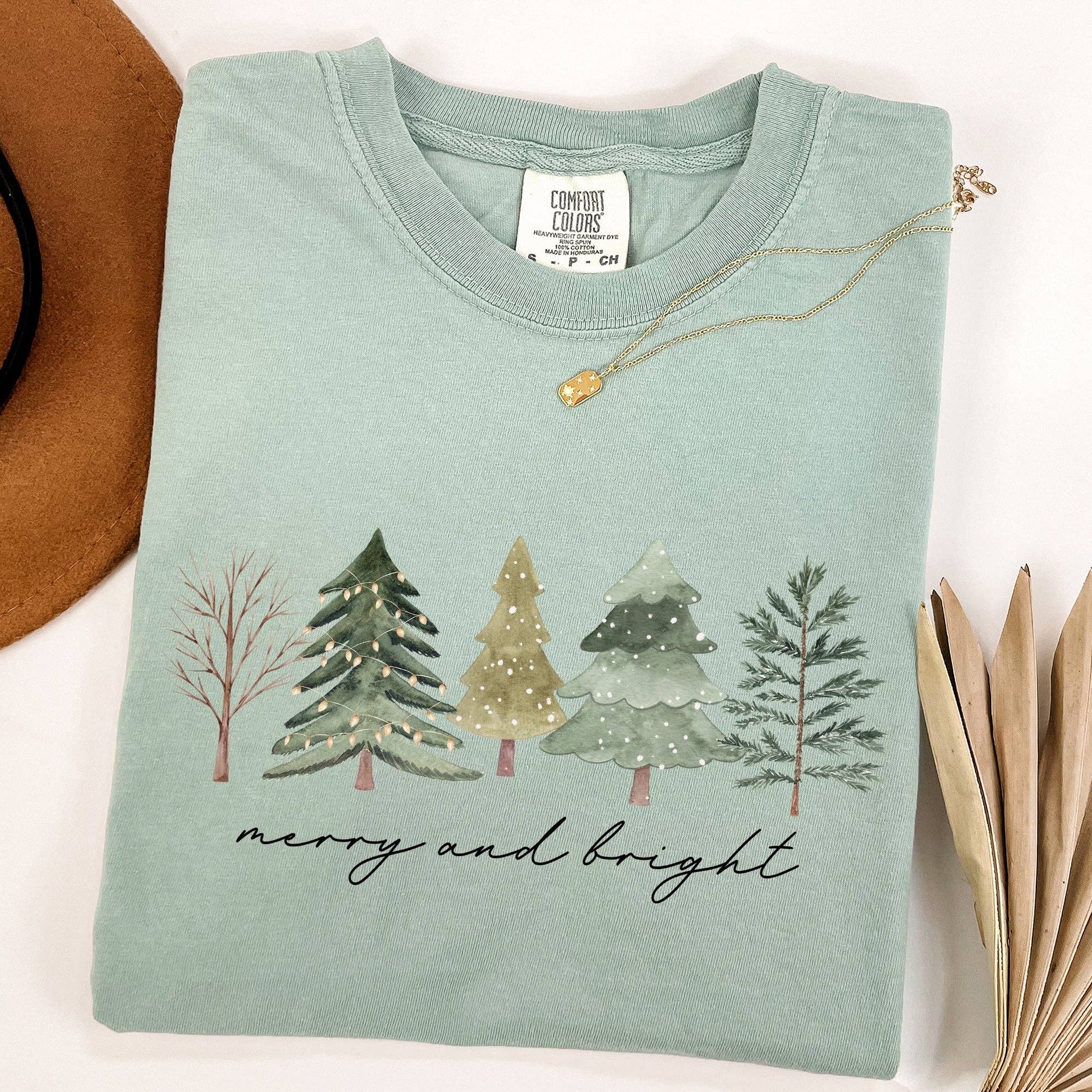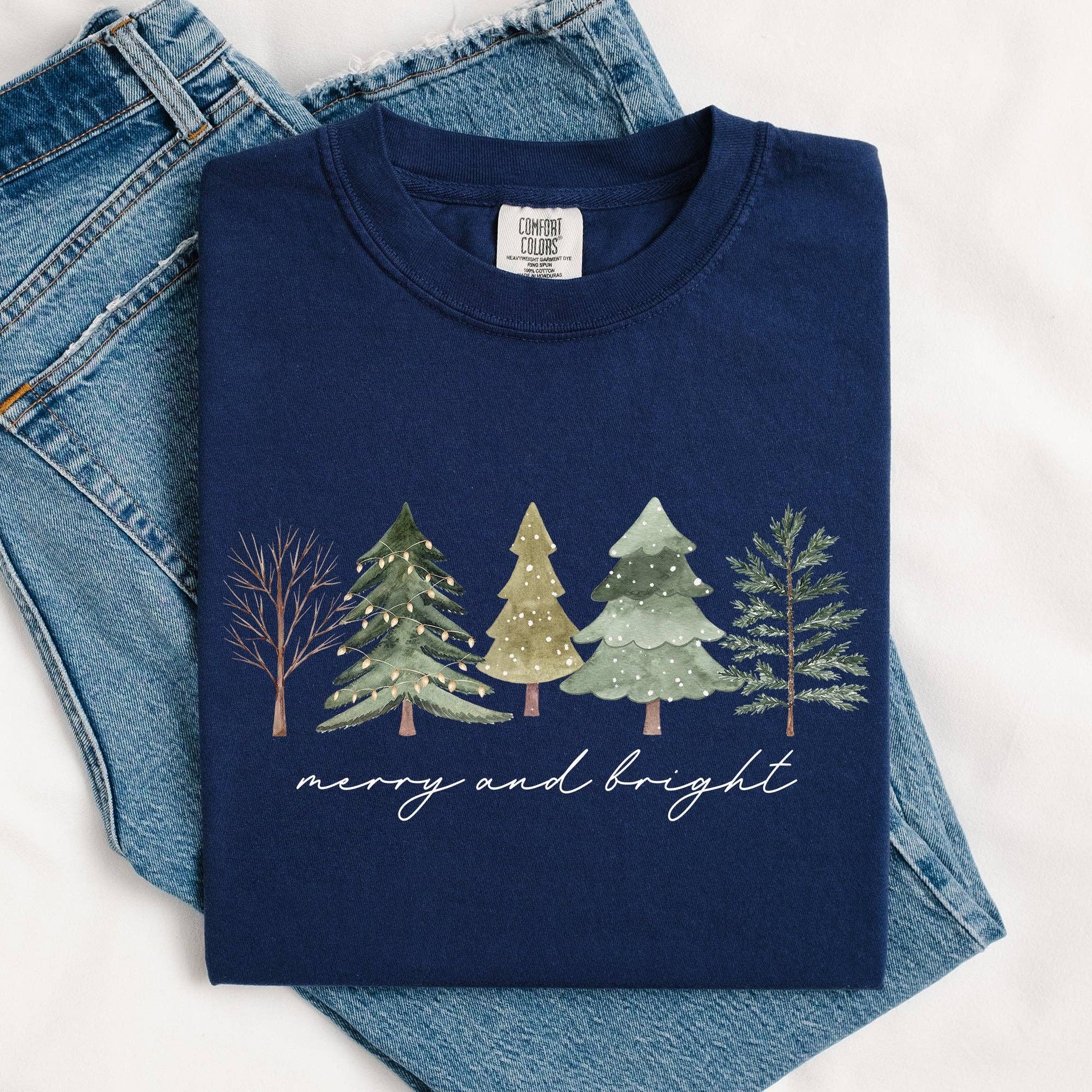 Merry and Bright, Christmas Trees, Minimalist Xmas Tshirt
