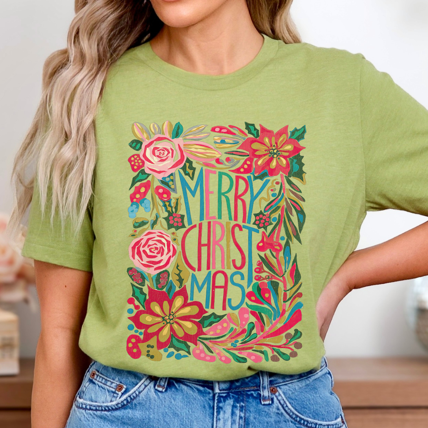 Merry Christmas Boho floral Christmas graphic t-shirt