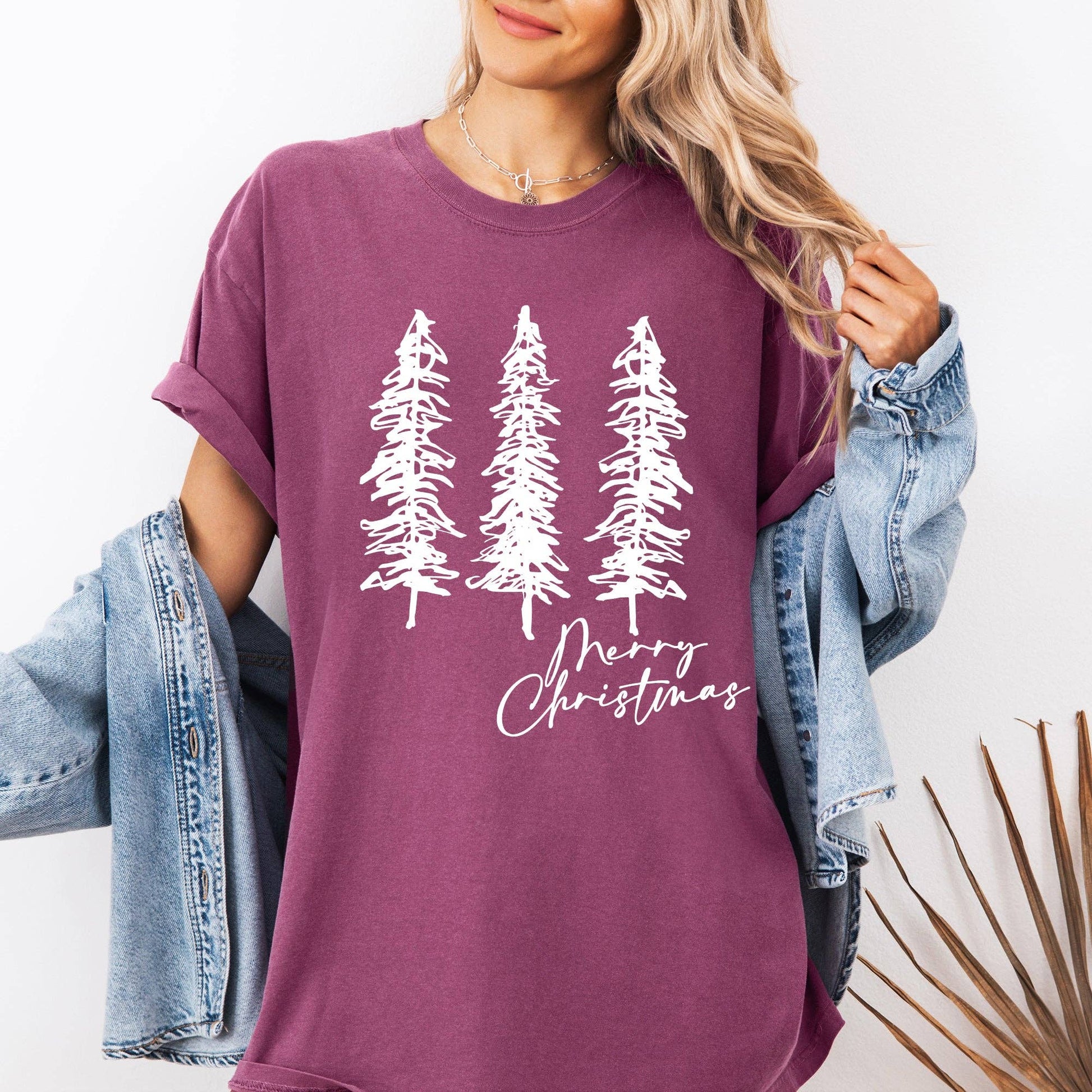 Merry Christmas, Sketched Pine Trees, Minimalist Xmas Tshirt
