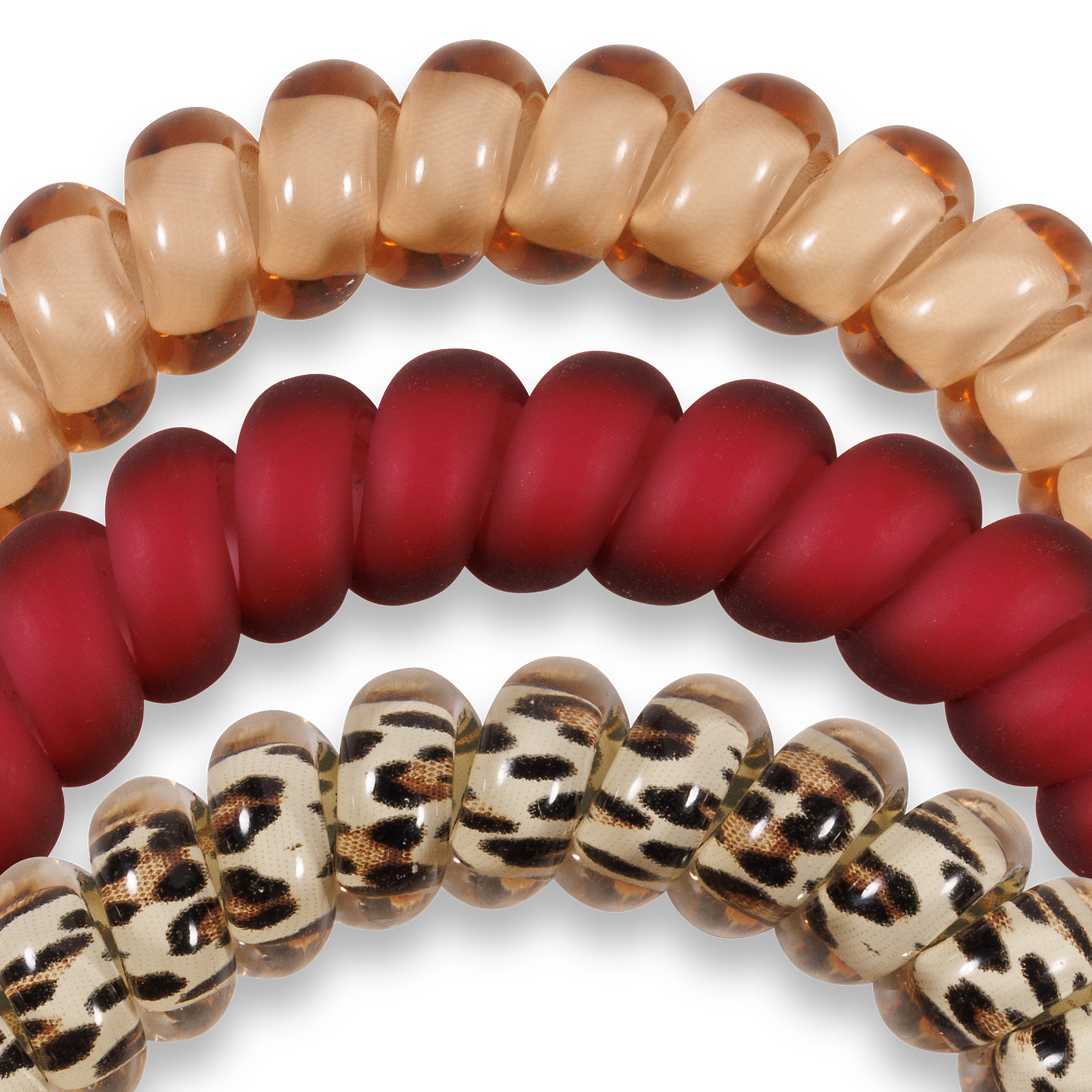 Wild SIde Small Hair Ties in Burgundy and Beige offer a strong grip without damage, doubling as a chic wrist accessory when not in use. Your new favorite hair essentials all year round.