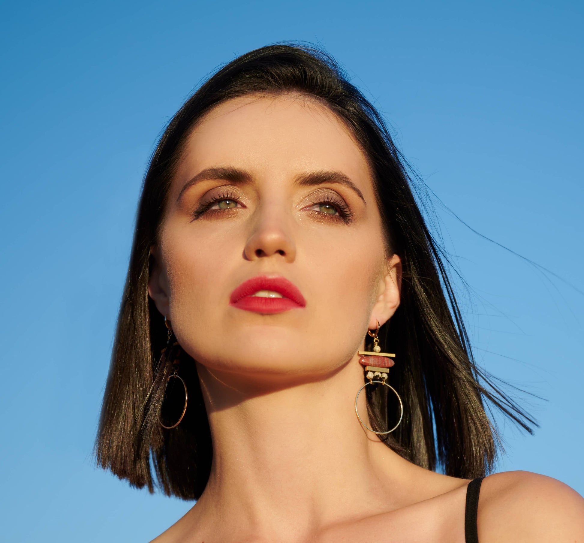 These unique statement earrings hang approximately 3.0" inches from the lobe and measure about 1.5" inches across their widest point. They feature an 18k gold plated leverback closure. These earrings are lightweight and should be suitable for everyday wear.